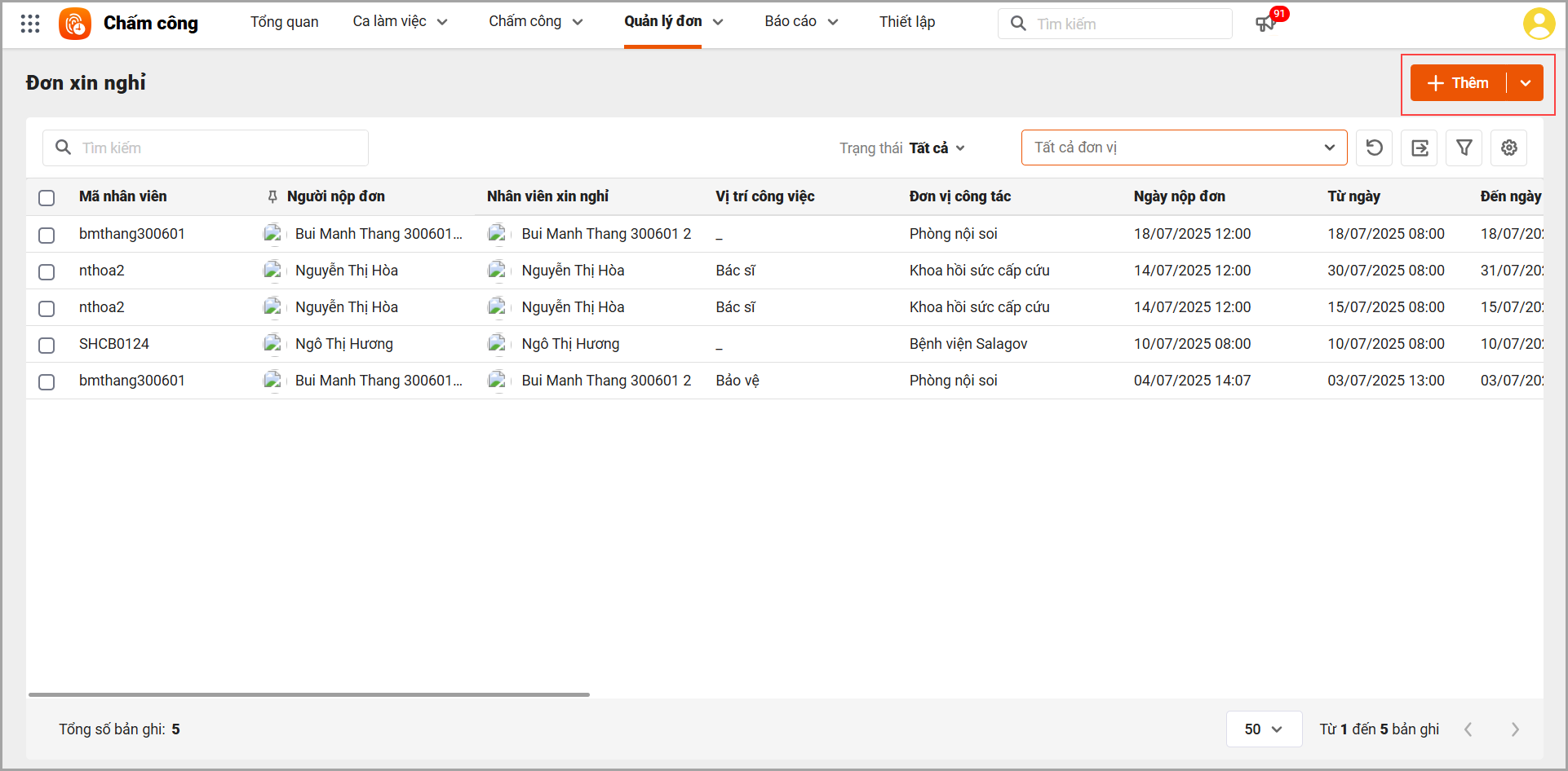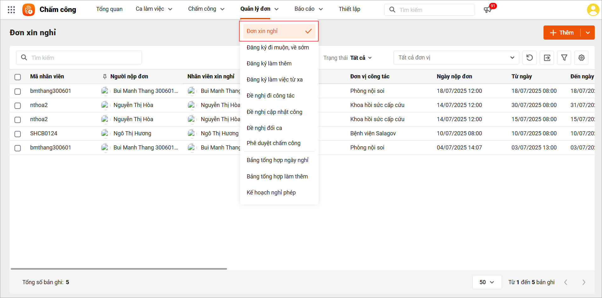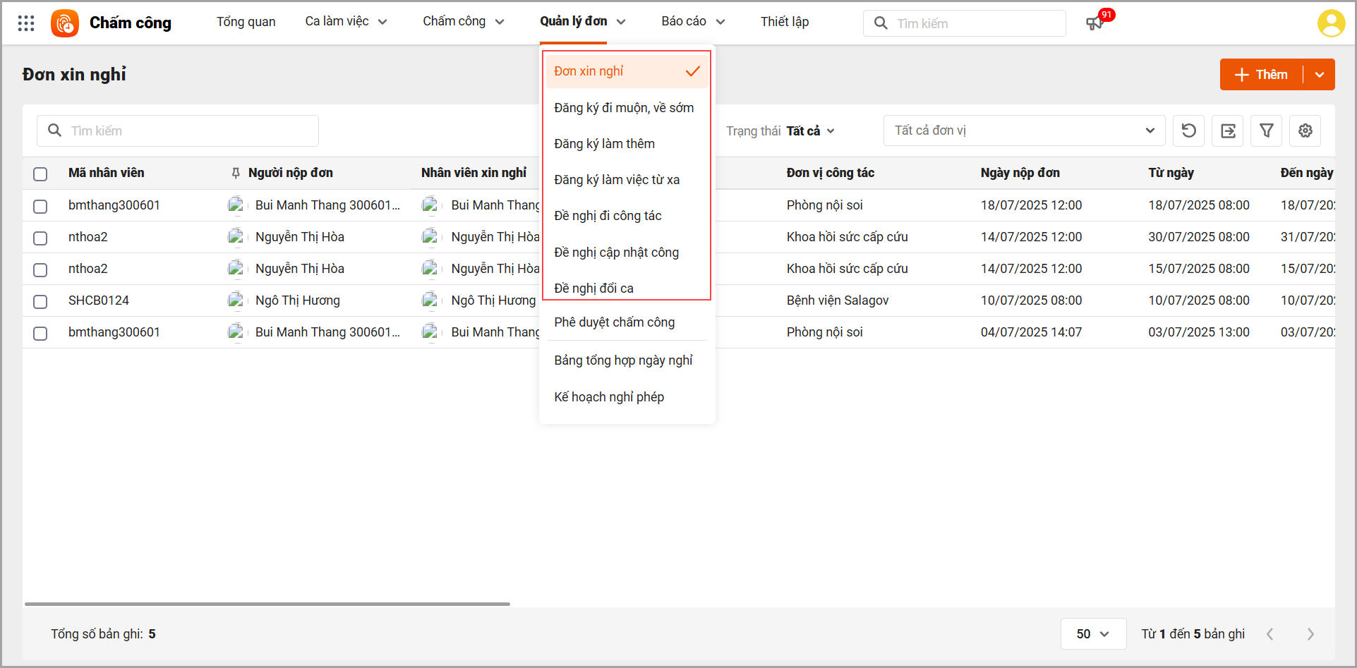 – Quản lý truy cập danh sách đơn xin nghỉ: Vào mục Đơn xin nghỉ trong phần mềm để xem toàn bộ các đơn đã được nộp bởi CBNV.