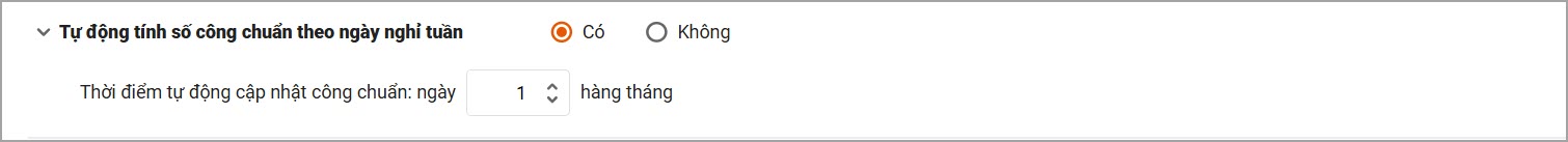 Còn nếu đơn vị tính công theo công chuẩn thay đổi hàng tháng (VD: tháng có 31 ngày thì số công chuẩn là 27, còn tháng có 30 ngày thì số công chuẩn là 26), hoặc không tính theo công chuẩn thì có thể bỏ qua thiết lập này.