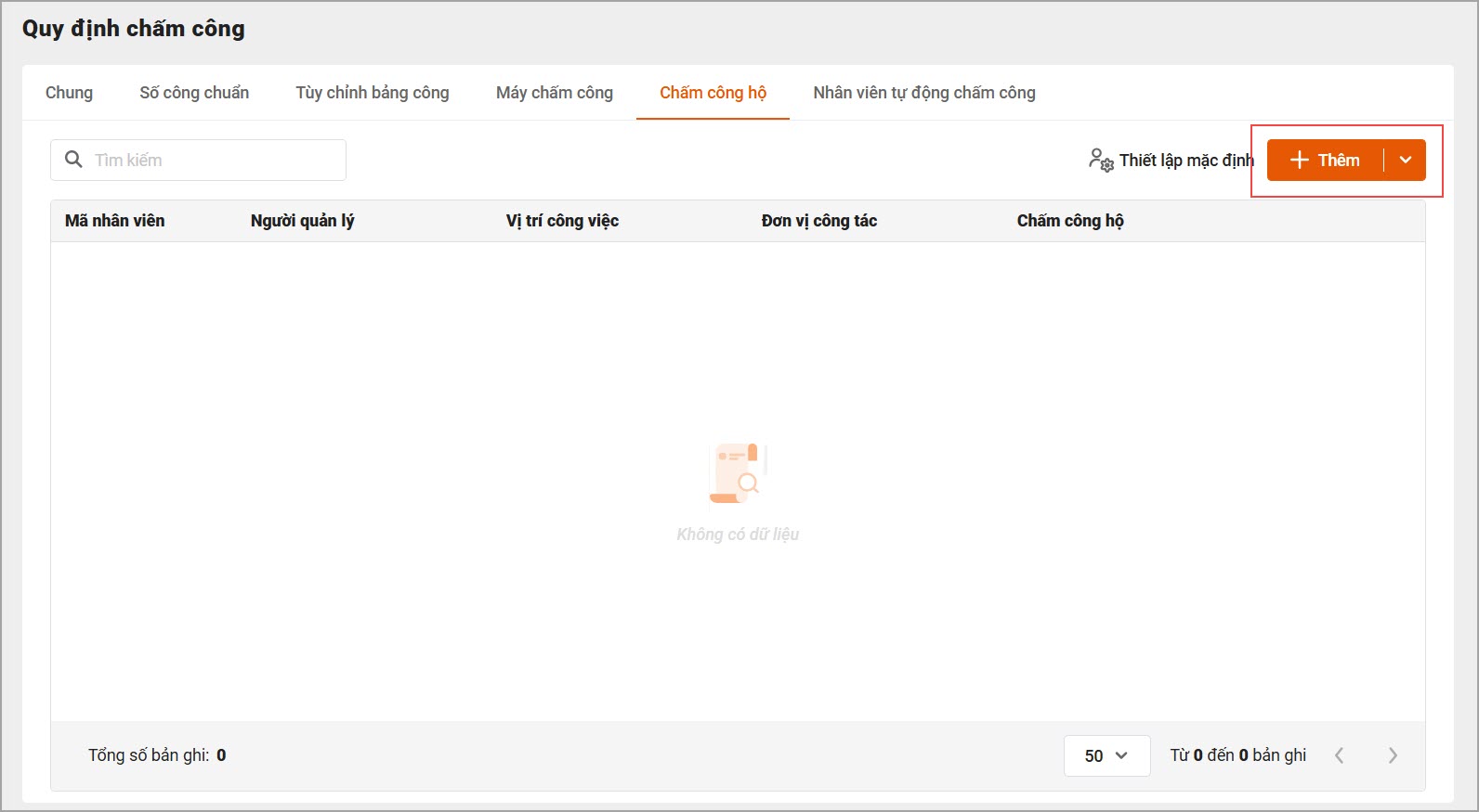 – Truy cập vào phân hệ Thiết lập\Chấm công hộ.