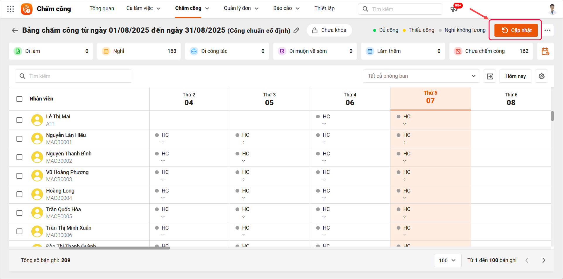 Trường hợp này xảy ra khi người dùng sau khi Nhập khẩu xong, lại nhấn nút “Cập nhật” trên bảng dữ liệu.