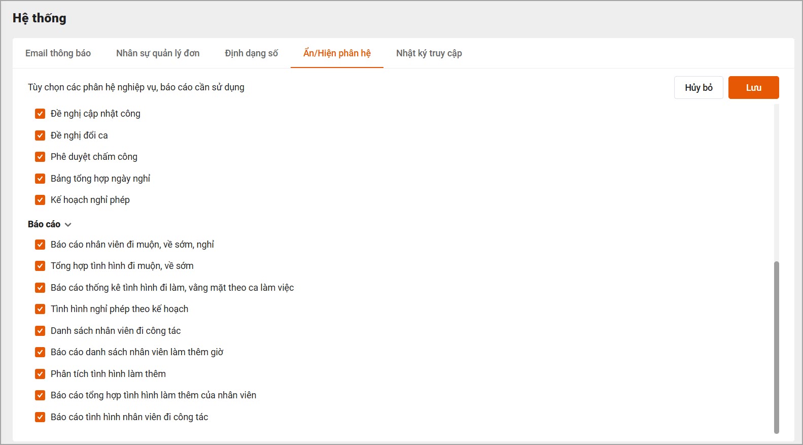 3. Ẩn/Hiện phân hệ