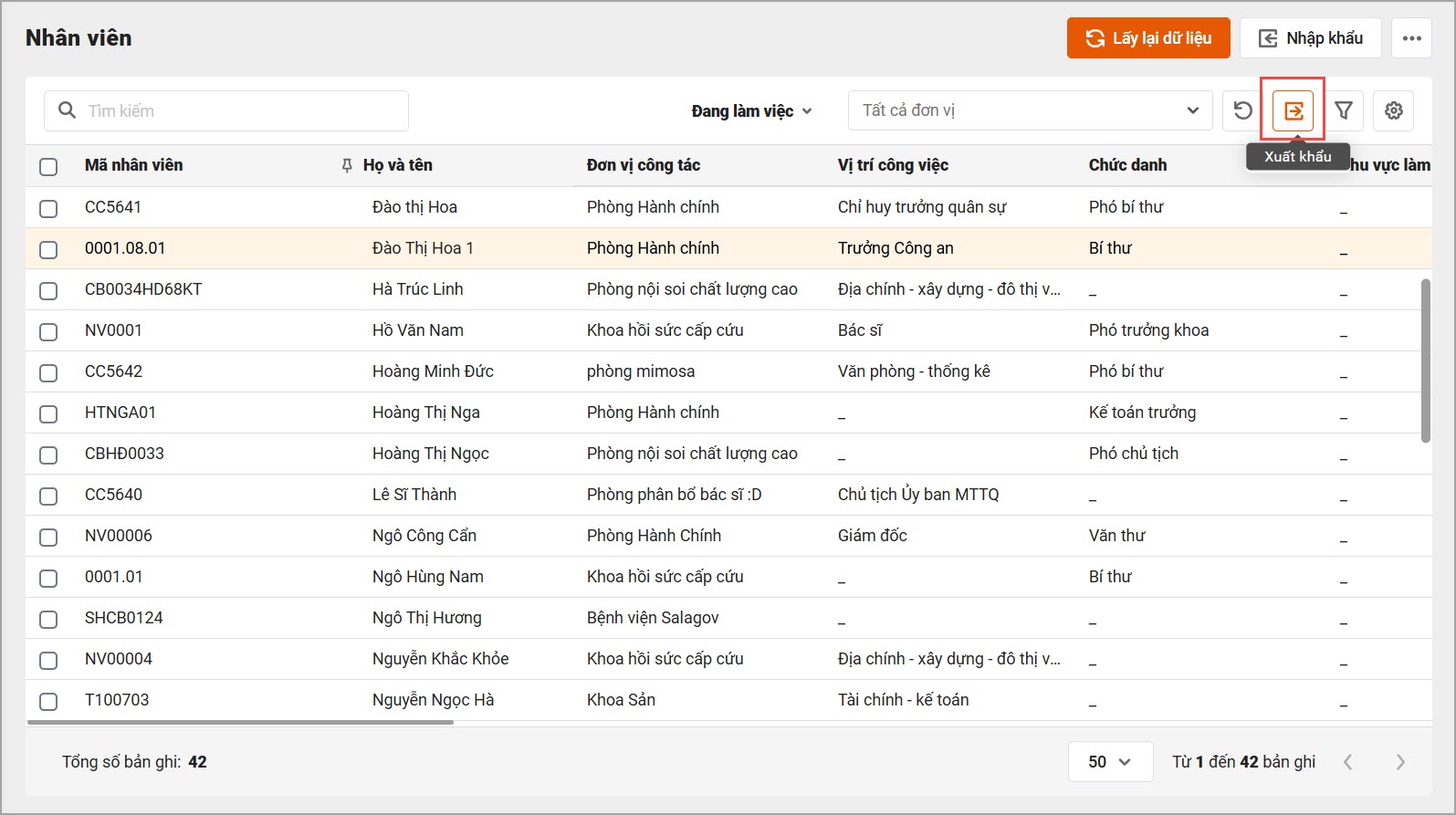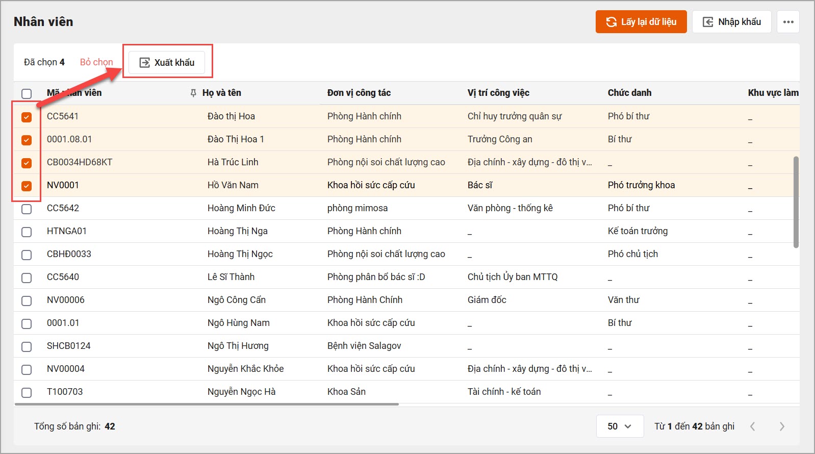 - Xuất khẩu tất cả CBNV trên danh sách:
