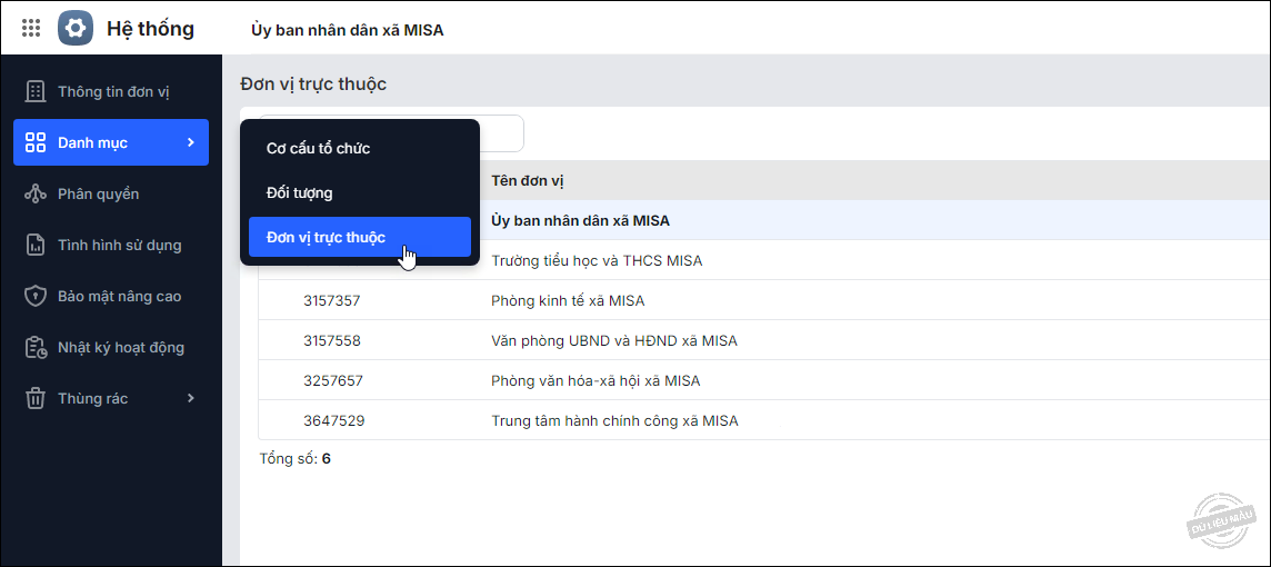 Bài viết hướng dẫn quản trị hệ thống xem danh sách đơn vị trực thuộc để nắm được tất cả các đơn vị trực thuộc hoạt động trong địa bàn, bao gồm trường học, trạm y tế, đoàn tể, đảm bảo các đơn vị thuộc quyền quản lý dúng quy định hành chính.