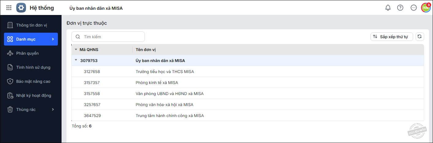 - Trên ứng dụng Hệ thống, vào Danh mục, chọn Đơn vị trực thuộc.