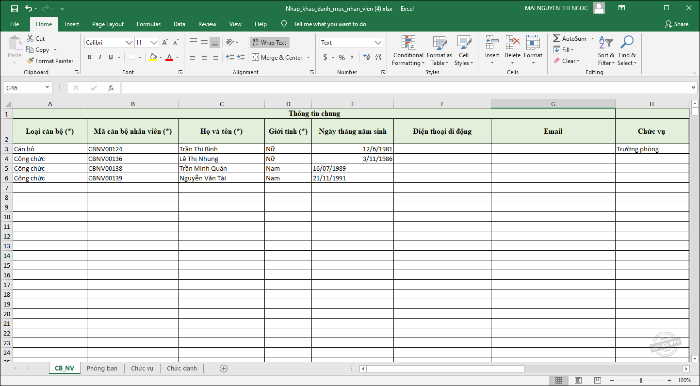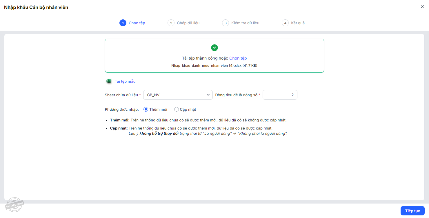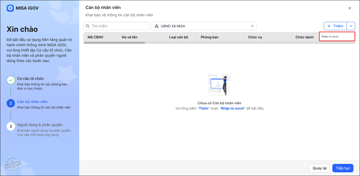 Cách 2: Nhập khẩu danh sách cán bộ nhân viên từ file excel