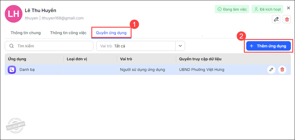 Nhấn đúp chuột tại người dùng, vào mục Quyền ứng dụng, nhấn Thêm ứng dụng.