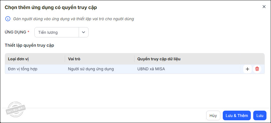 - Nhấn Lưu để hoàn thành hoặc Lưu và Thêm để tiếp tục phân quyền cho người dùng này vào ứng dụng khác.