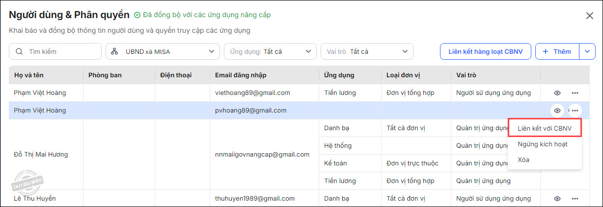 1. Sau quá trình khai báo và đồng bộ người dùng từ các ứng dụng lên nền tảng, có thể xảy ra trường hợp người dùng trùng lặp với CBNV.