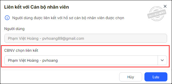 Chọn CBNV cần liên kết, nhấn Lưu.