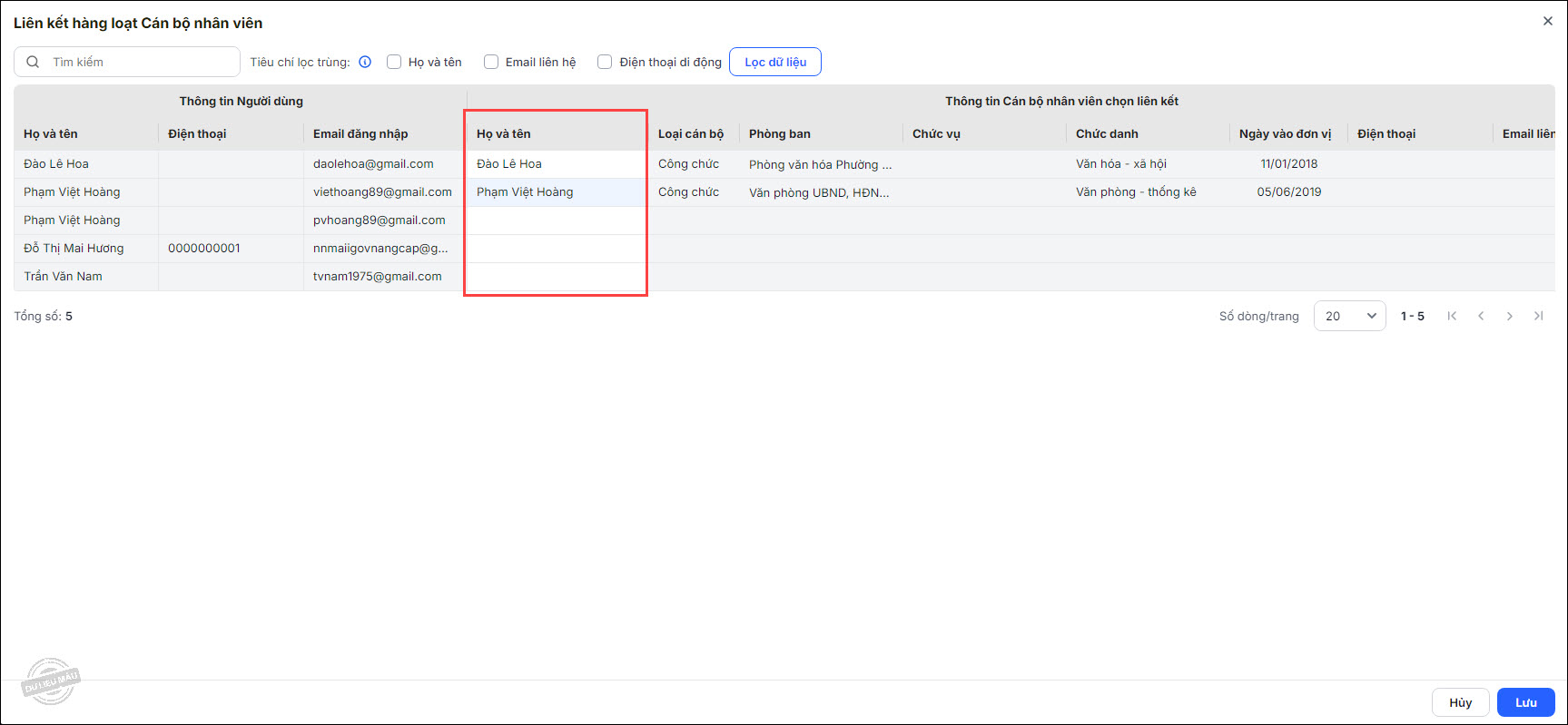 Chọn các CBNV cần liên kết, nhấn Lưu.