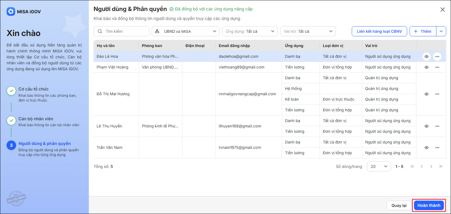 3. Sau khi phân quyền xong, nhấn Hoàn thành.