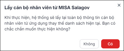 - Nhấn Có để xác nhận lấy CBNV từ ứng dụng lên nền tảng.