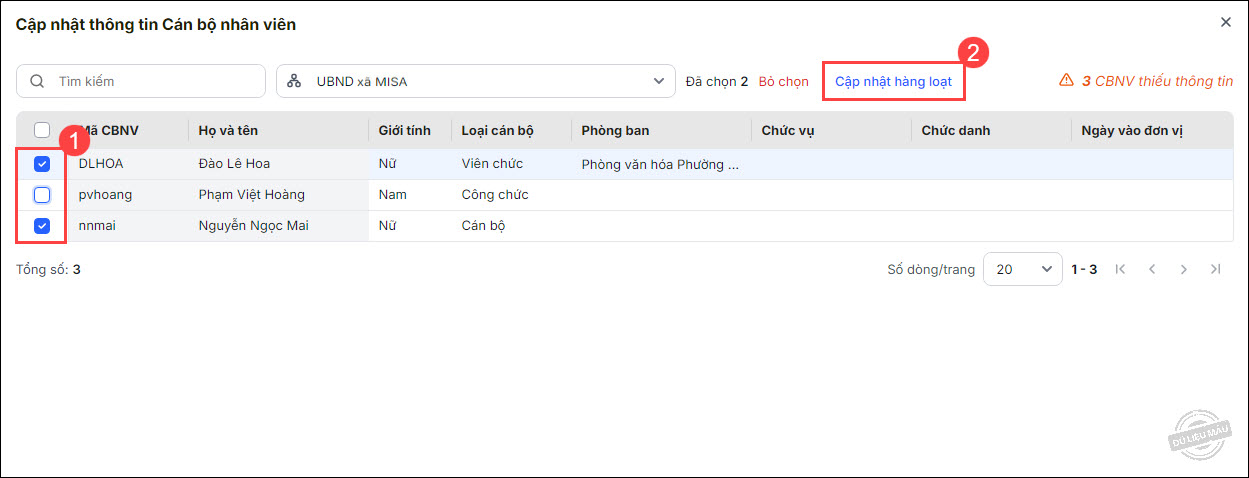 - Tích chọn các CBNV cần cập nhật.