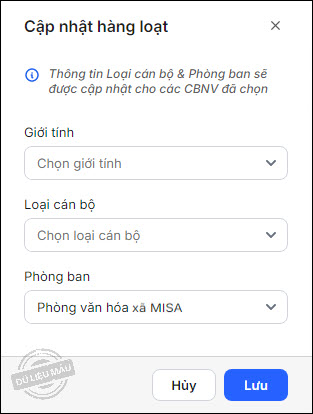 - Cập nhật thông tin cho nhiều CBNV cùng loại cán bộ và phòng ban: