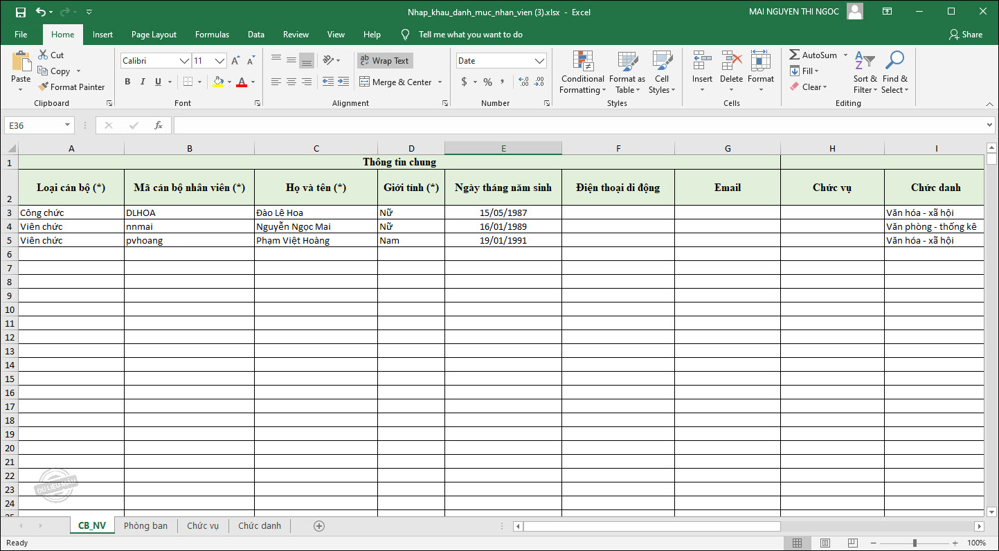 Cách 2: Nhập khẩu danh sách cán bộ nhân viên