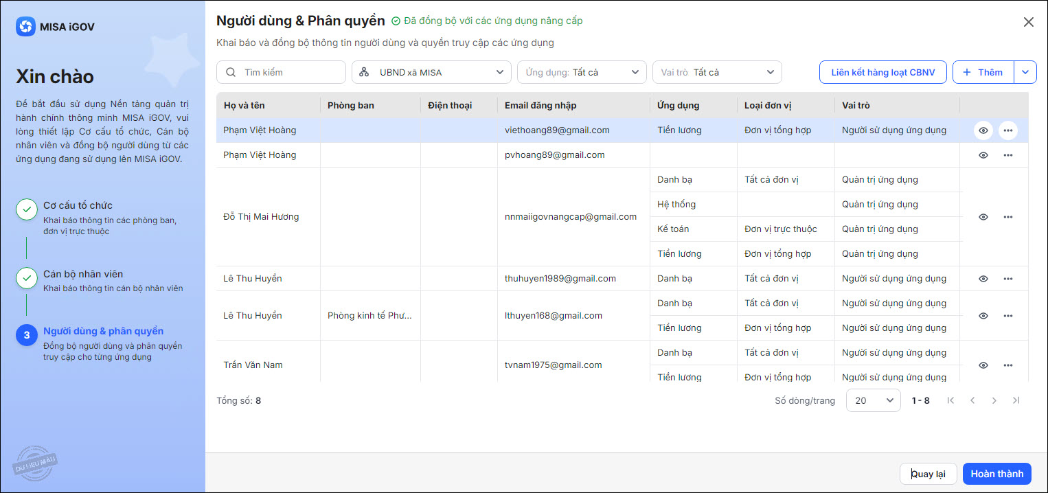 1. Hệ thống sẽ hiển thị danh sách người dùng anh chị đã khai báo và đồng bộ ở bước 2.