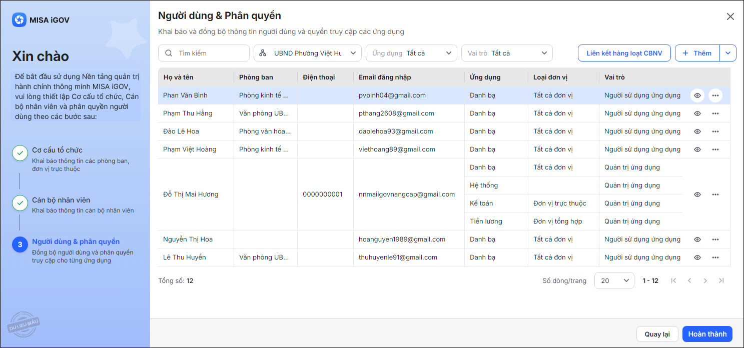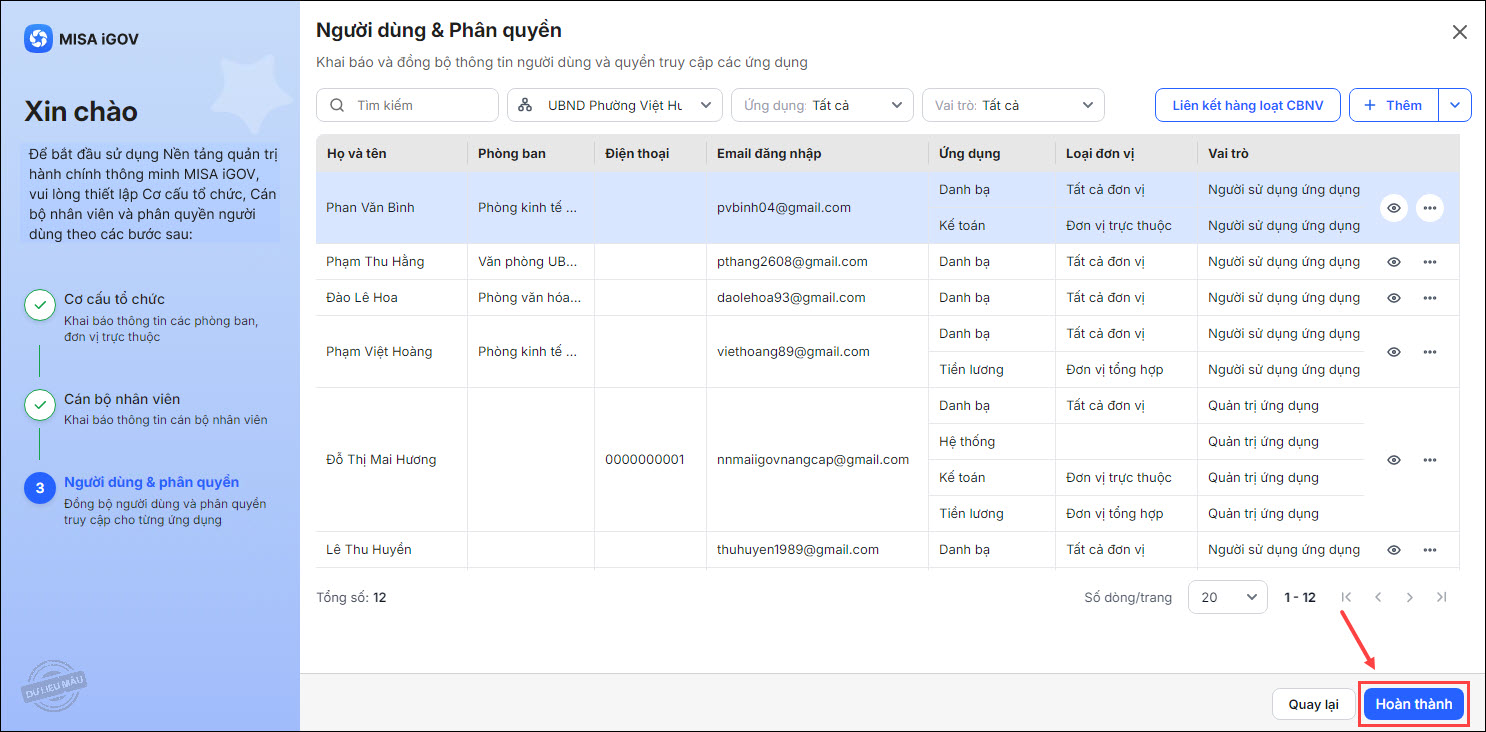 4. Sau khi phân quyền xong, nhấn Hoàn thành.