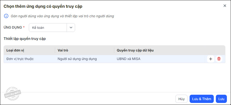- Nhấn Lưu để hoàn thành hoặc Lưu và Thêm để tiếp tục phân quyền cho người dùng này vào ứng dụng khác.