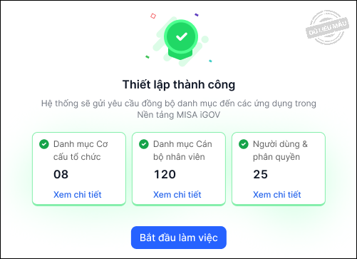 Lúc này, anh/chị chọn Bắt đầu làm việc trên nền tảng MISA iGOV.