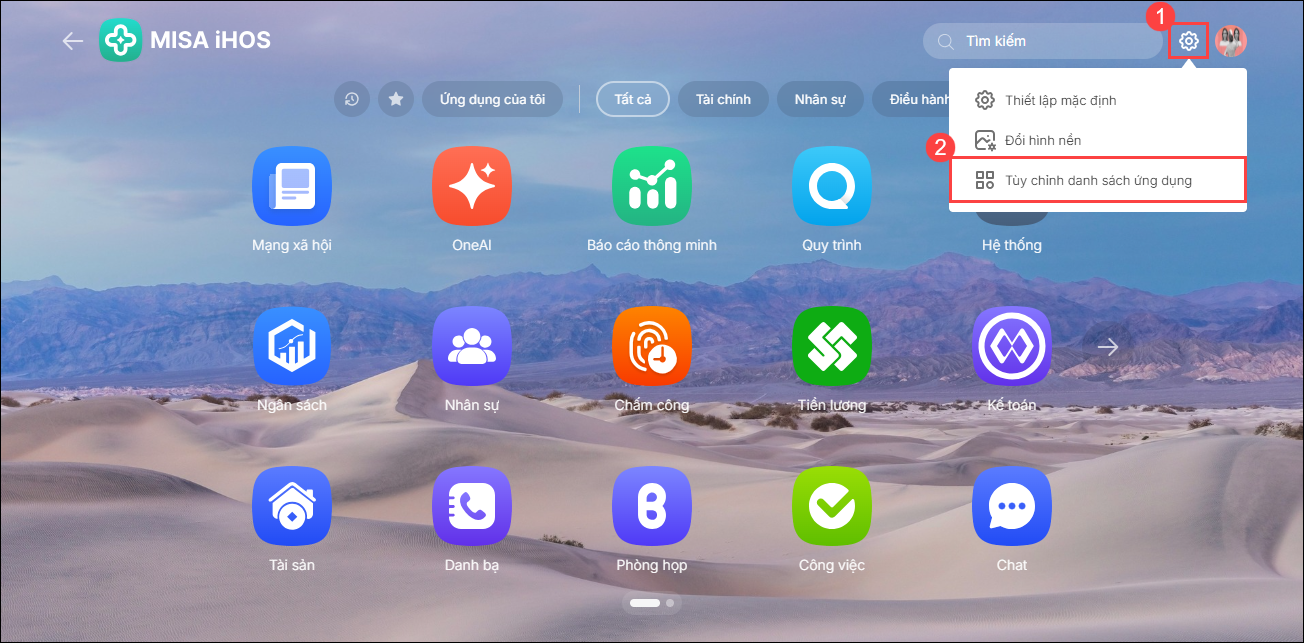 - Trên màn hình tổng quan, nhấn vào biểu tượng ⚙️, chọn Tùy chỉnh danh sách ứng dụng.