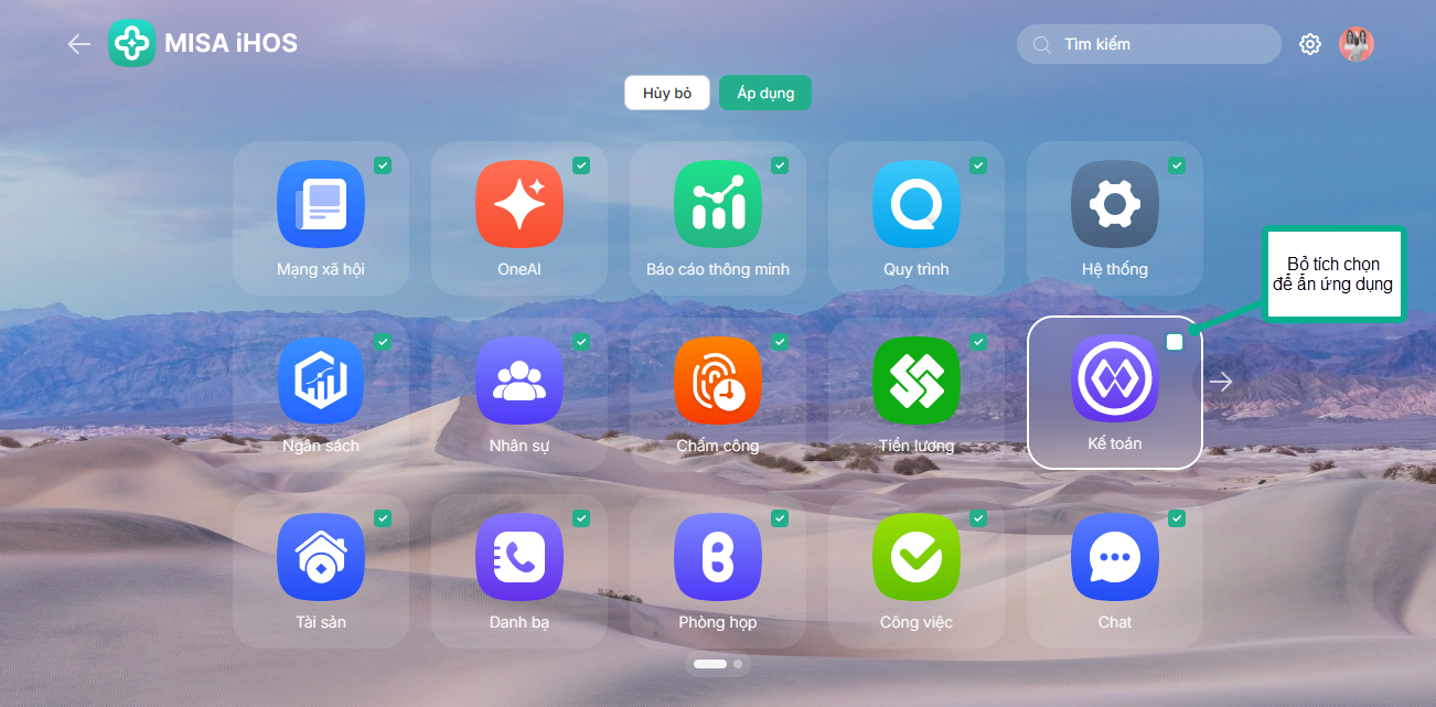 - Bỏ tích chọn ứng dụng nào muốn ẩn khỏi màn hình, nếu muốn hiển thị lại thì tích chọn lại.