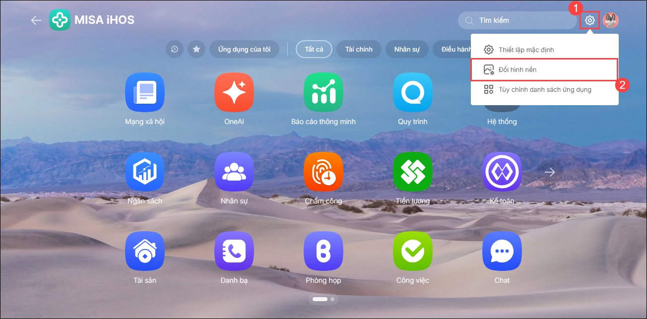 - Trên màn hình tổng quan, nhấn vào biểu tượng ⚙️, chọn Đổi hình nền.