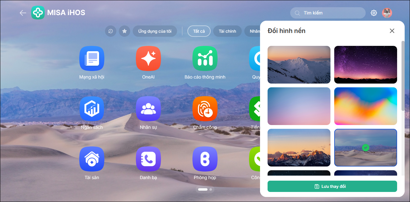 - Lựa chọn ảnh nền trong kho ảnh có sẵn của phần mềm, nhấn Lưu thay đổi.