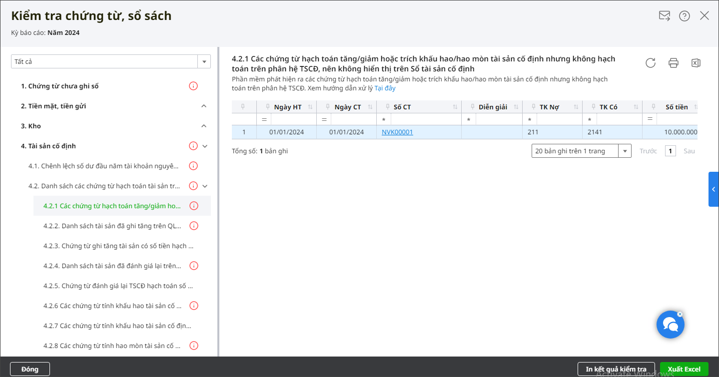 Bài viết này hướng dẫn anh/chị cách kiểm tra và xử lý khi kiểm tra chứng từ sổ sách phần mềm cảnh báo có chứng từ hạch toán tăng/giảm hoặc trích khấu hao/hao mòn tài sản cố định nhưng không hạch toán trên phân hệ Tài sản cố định nên không hiển thị trên Sổ tài sản cố định trong trường hợp đơn vị có sử dụng phần mềm MISA QLTS.