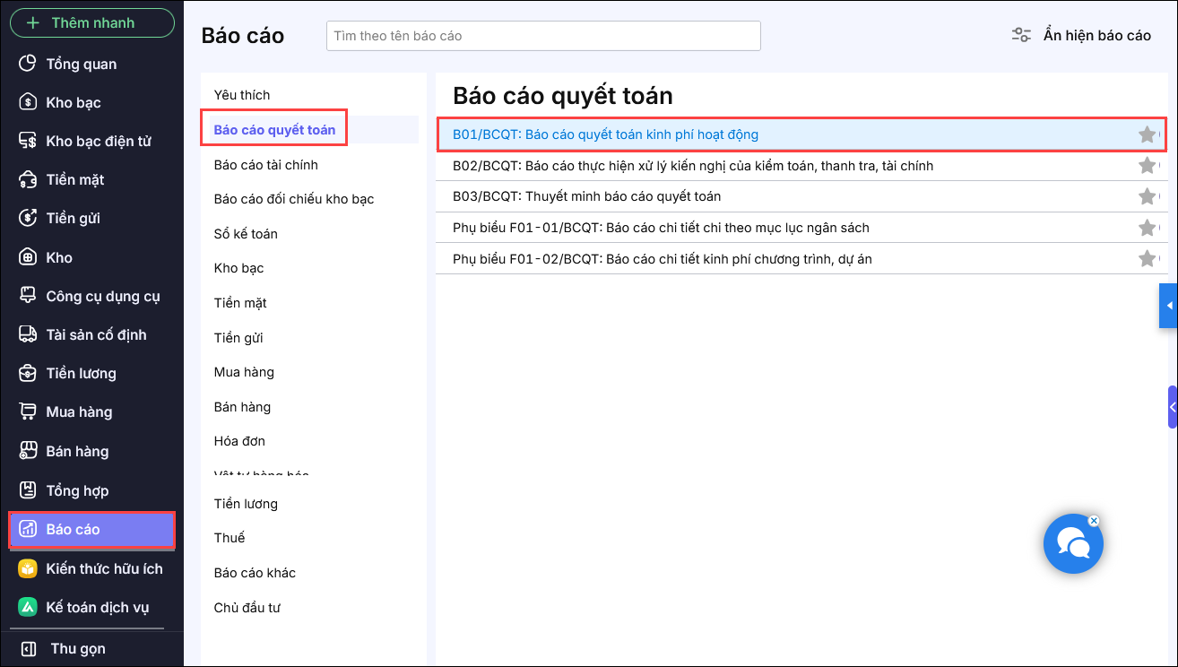Bài viết này hướng dẫn xử lý trường hợp báo cáo B01/BCQT (Báo cáo quyết toán kinh phí hoạt động) không hiển thị số liệu tại Mục C: Nguồn kinh phí hoạt động nghiệp vụ