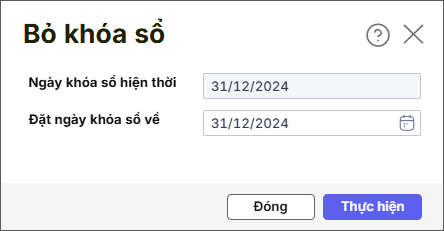 Ví dụ: Ngày khóa sổ hiện thời là 31/12/2024, muốn sửa các chứng từ phát sinh kể từ ngày 01/01/2024 đến ngày 31/12/2024 thì cần đặt lại ngày khóa sổ về ngày 31/12/2023.