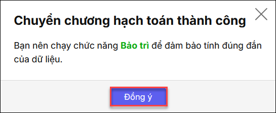 Bước 6: Nhấn nút Thực hiện. Hệ thống sẽ xử lý chuyển chương theo thiết lập đã chọn. Và thông báo thực hiện bảo trì.