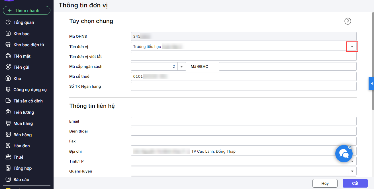 Tùy chọn Tên đơn vị và Mã QHNS khi in báo cáo trên MISA iGOV Kế toán