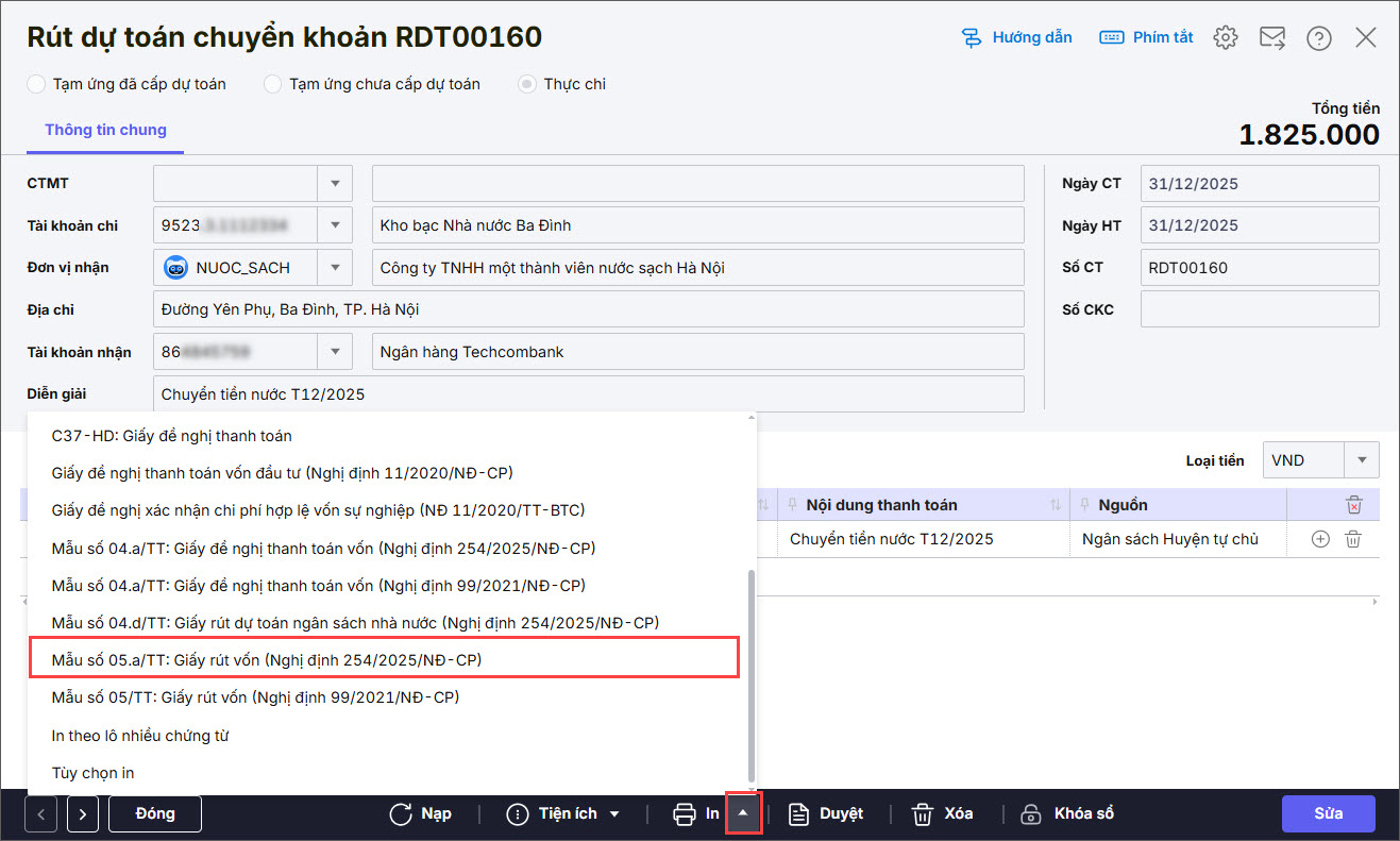 Bài viết này hướng dẫn bạn in các chứng từ rút vốn đầu tư theo NĐ254/2025/NĐ-CP để giao dịch với kho bạc.