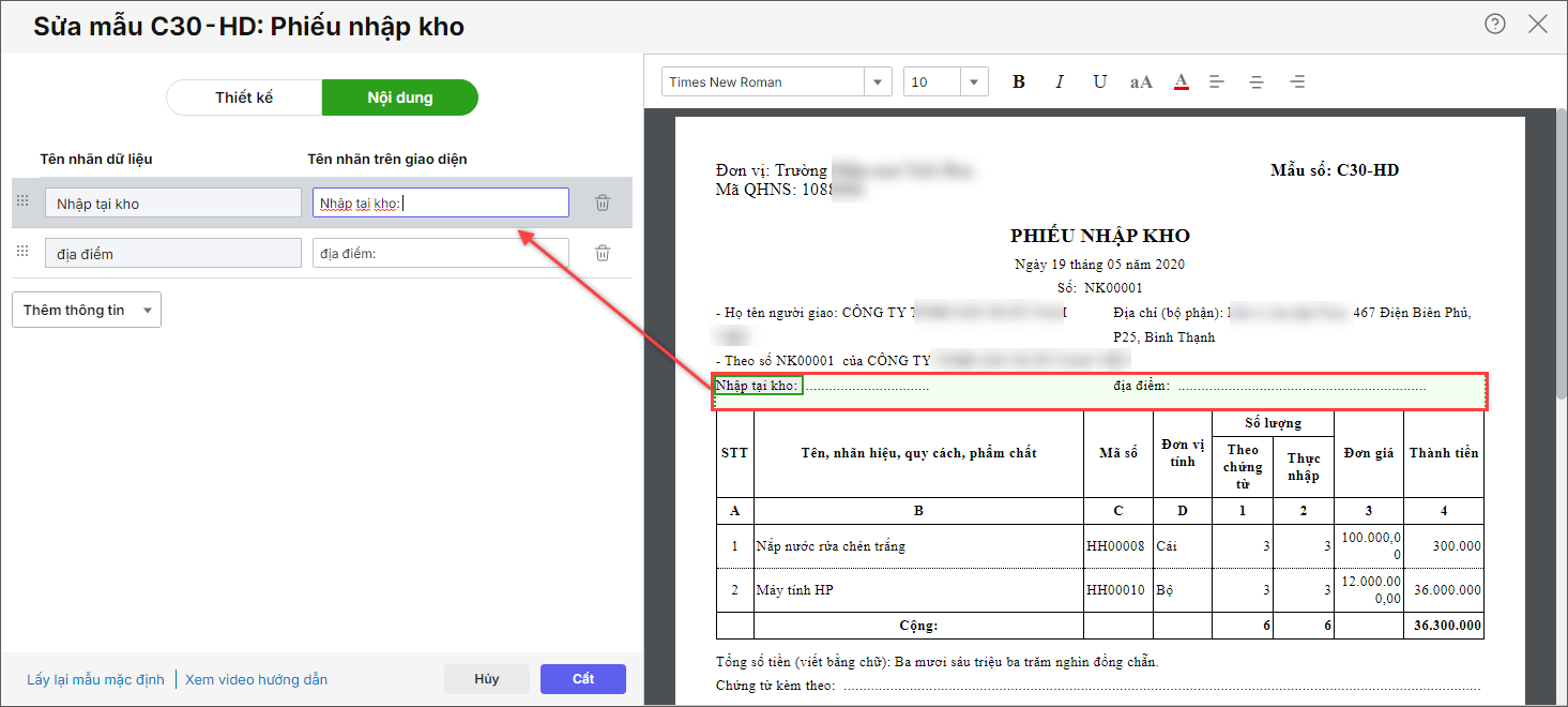 >>> Xem hướng dẫn Sửa mẫu chứng từ tại đây
