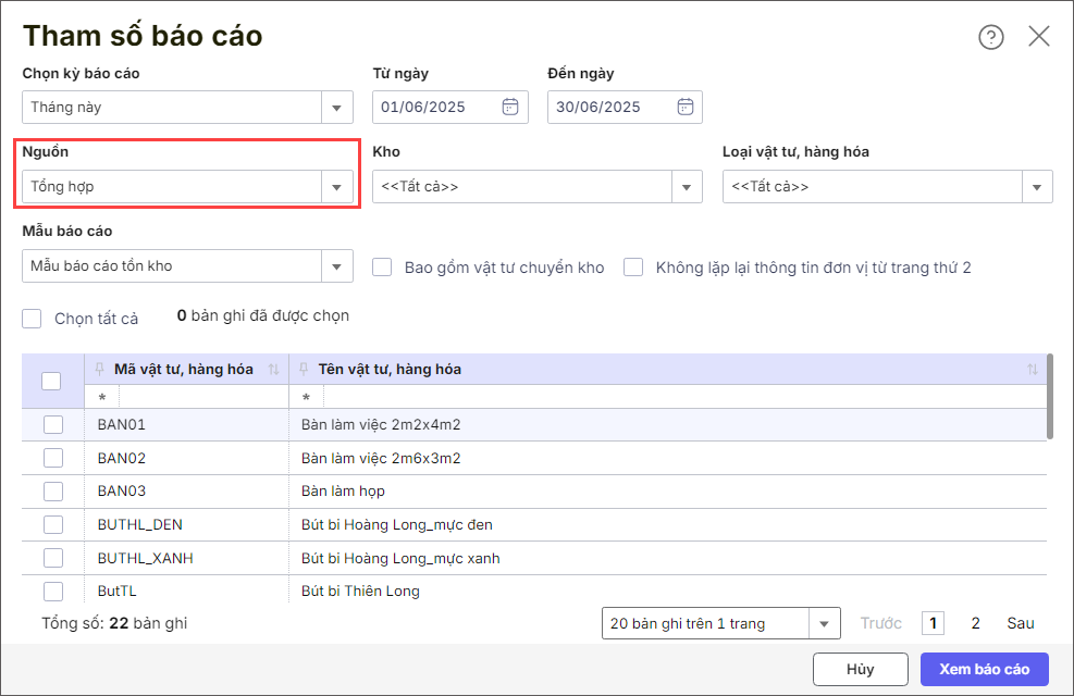 Bài viết này giới thiệu và hướng dẫn anh/chị chọn tham số Nguồn kinh phí khi in một số báo cáo tồn kho chi tiết.