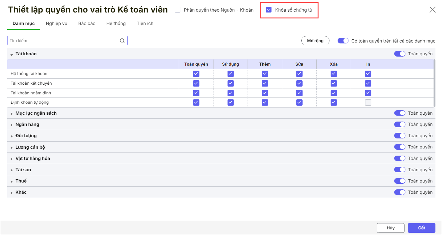 2.1 Phân quyền tính năng Khóa sổ chứng từ