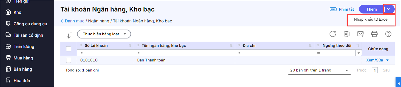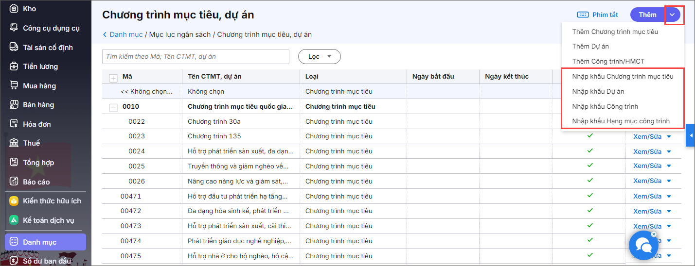 Bài viết hướng dẫn nhập khẩu danh mục Chương trình mục tiêu, Dự án và Tài khoản ngân hàng, Kho bạc trực tiếp từ file Excel vào phần mềm giúp tiết kiệm thời gian , đồng bộ danh mục nhanh chóng từ bên ngoài vào phần mềm. Đồng thời Xuất khẩu các danh mục này ra file Excel để kiểm tra, chỉnh sửa hoặc lưu trữ dễ dàng.