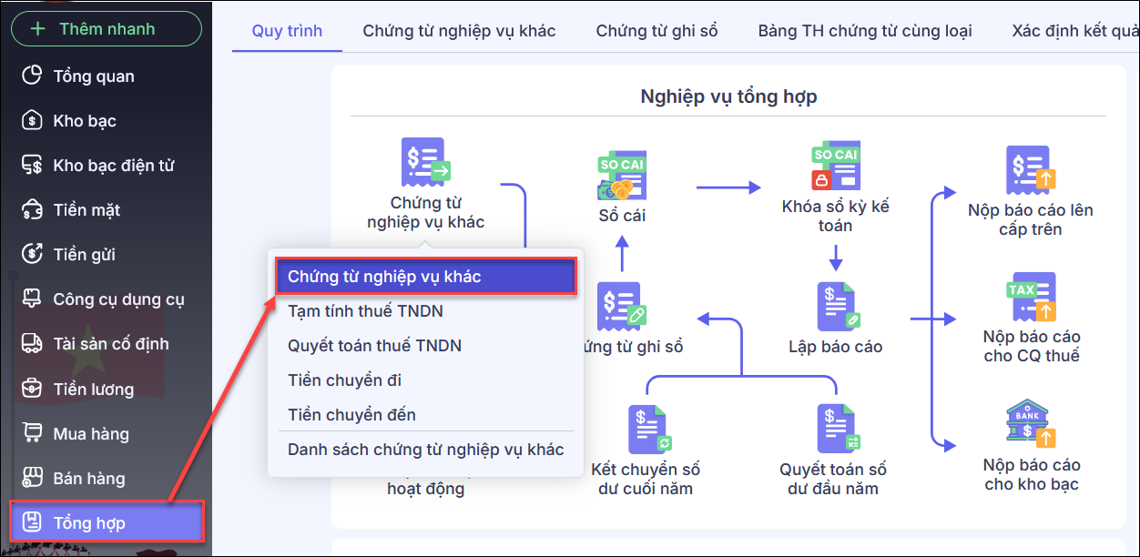 Bước 1: Vào phân hệ Tổng hợp/Chứng từ nghiệp vụ khác: