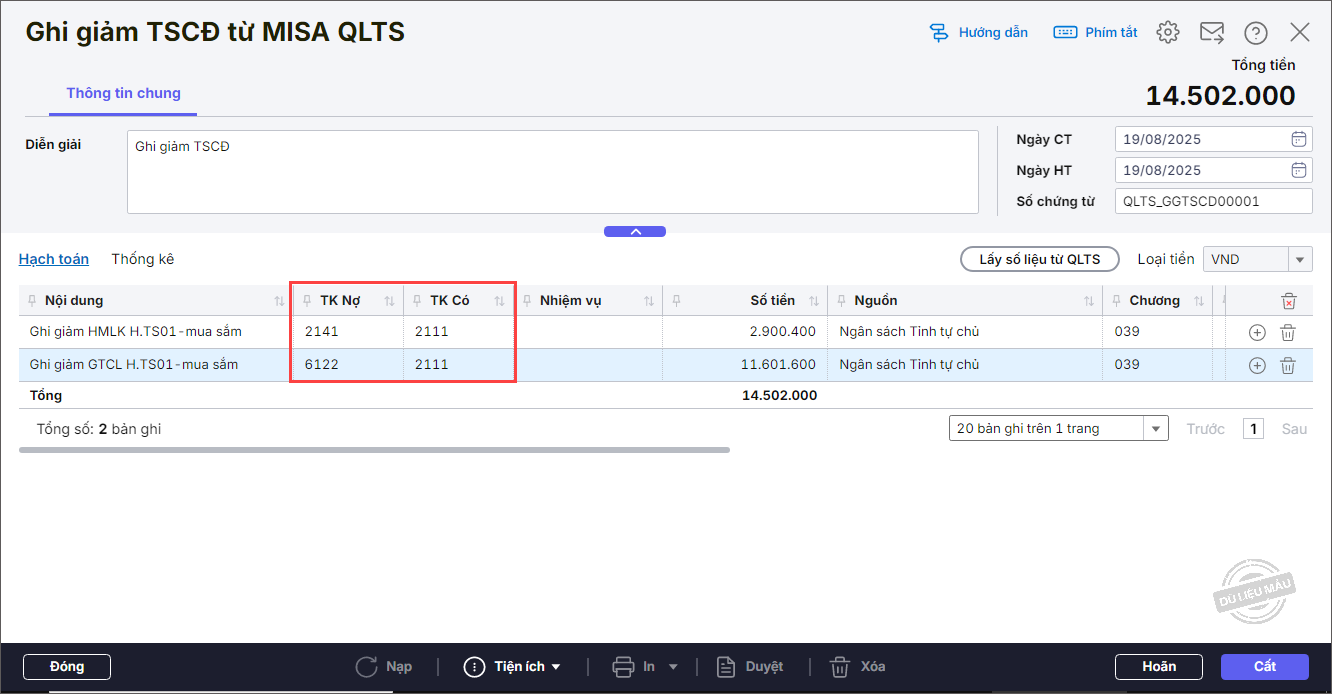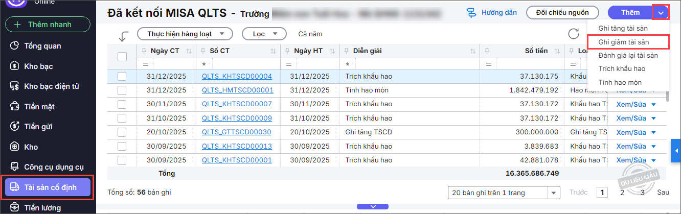 Bài viết hướng dẫn ghi giảm TSCĐ trên MISA QLTS khi nguồn hình thành là nguồn NSNN do tài sản không đủ tiêu chuẩn hoặc có quyết định đánh giá lại, sau đó đồng bộ sang MISA Mimosa Online để hạch toán giảm TSCĐ, tăng CCDC, đảm bảo số liệu và nguồn kinh phí đồng bộ, đúng quy định.