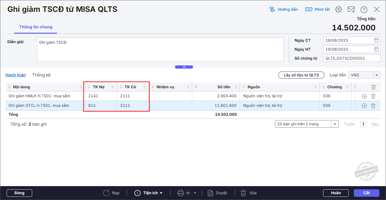 Bài viết nhằm hướng dẫn anh/chị định khoản nghiệp vụ và bước thực hiện trên MISA Mimosa Online (Đối chiếu nguồn và lấy chứng từ ghi giảm từ MISA QLTS về).