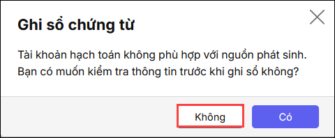 • Phần mềm có thông báo Ghi sổ chứng từ-> Tích Không
