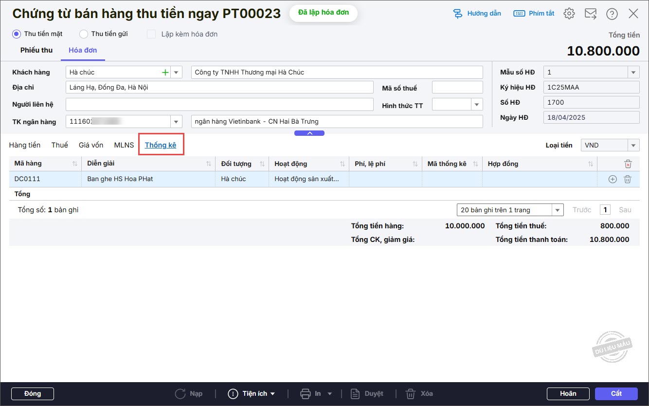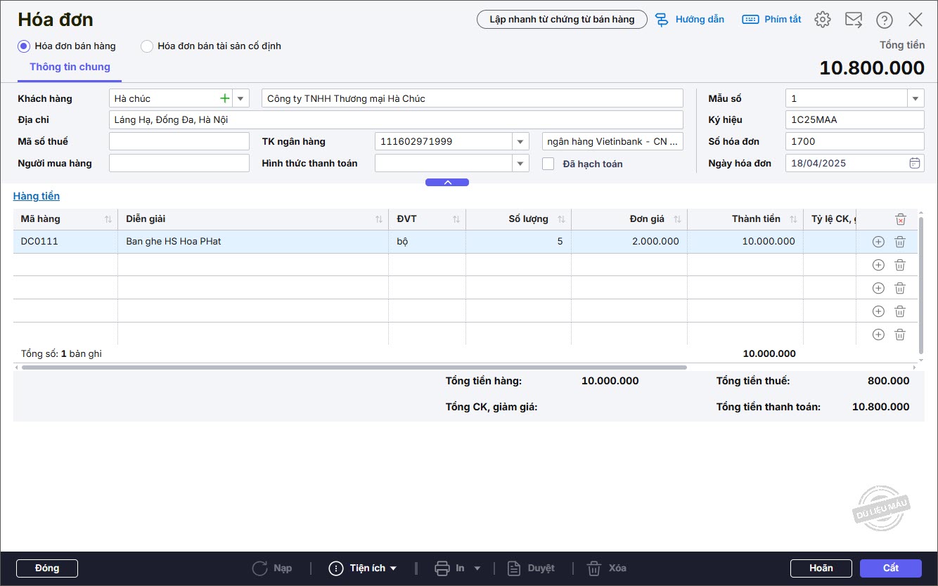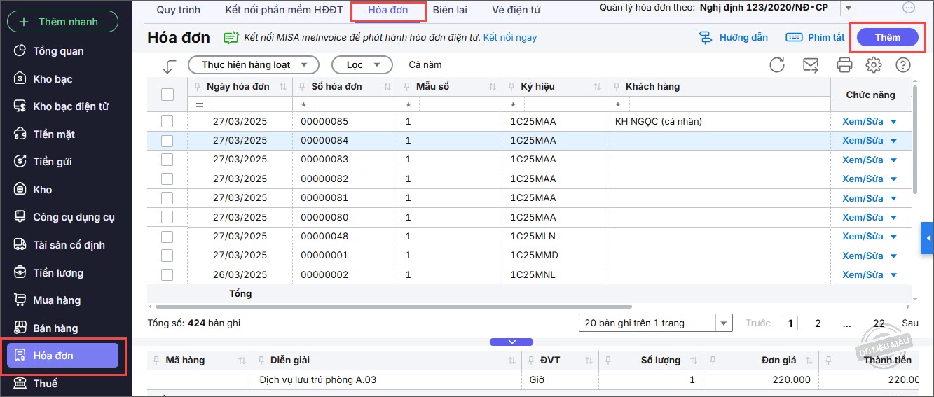 – Nhập thông tin Hóa đơn: