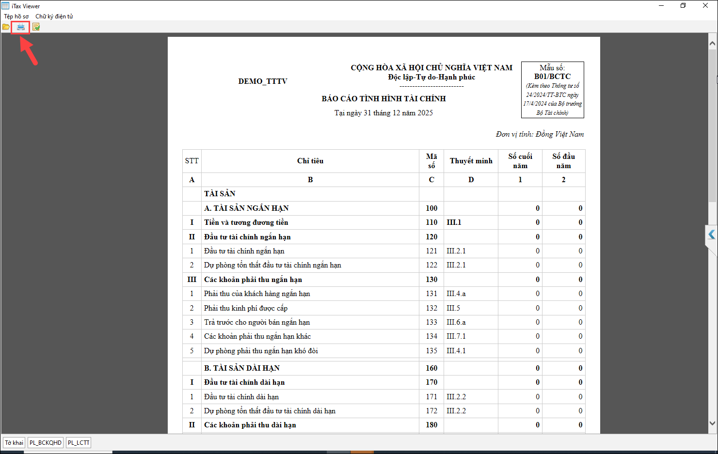 Bước 2: Mở Báo cáo tài chính gồm B01/BCTC, B02/BCTC, B03/BCTC đã xuất XML từ phần mềm theo hướng dẫn tại đây qua phần mềm đọc Itaxviewr