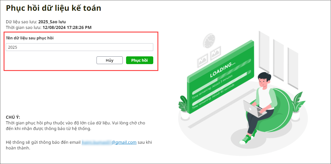 - Nhập Tên dữ liệu. Nhấn Phục hồi.