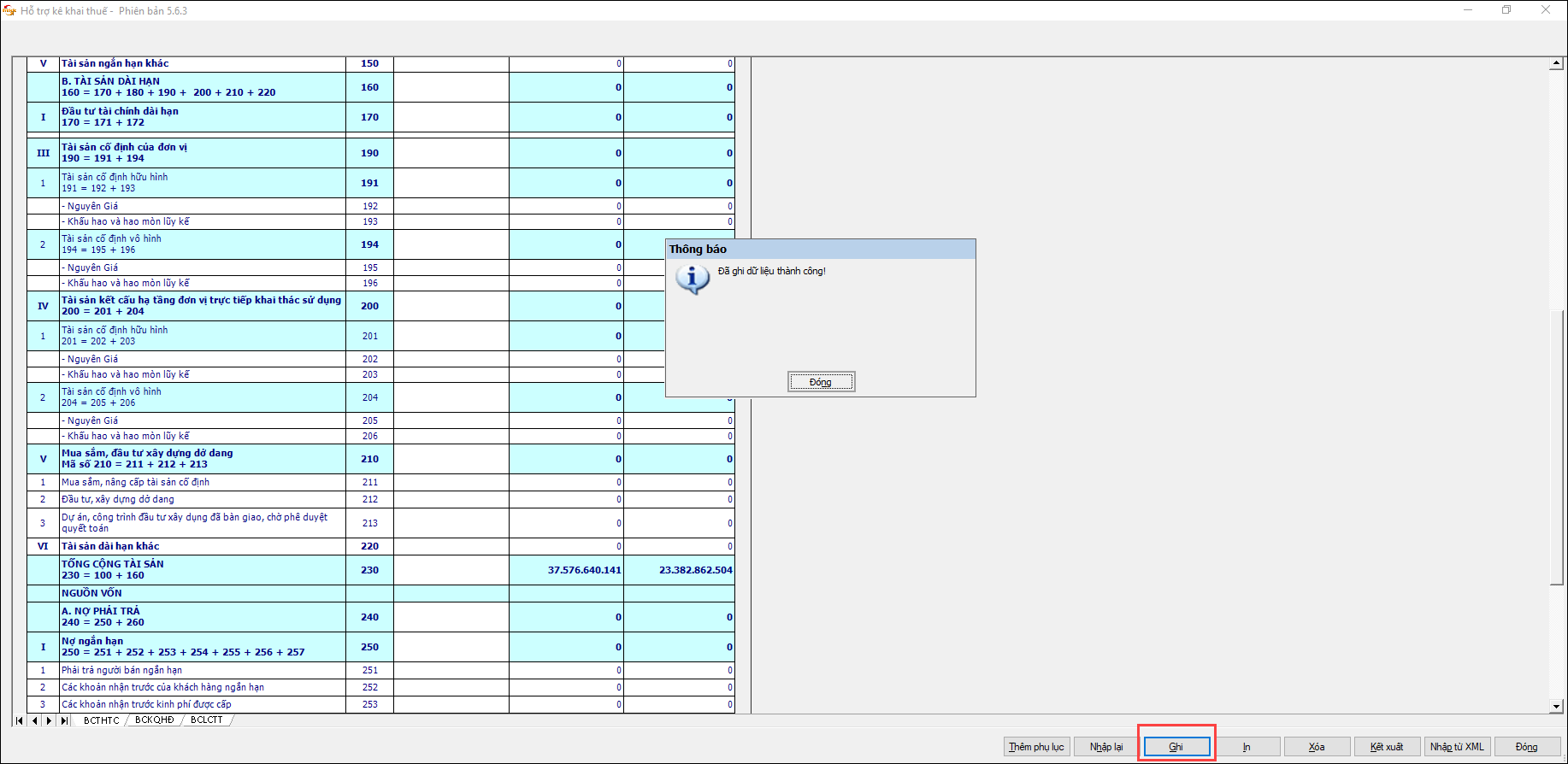 Bước 6: Sau khi nhập xong các báo cáo thì tích vào mục Ghi để lưu lại số liệu