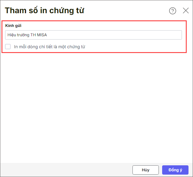 • Tích chọn In mỗi dòng chi tiết là một chứng từ nếu cần.