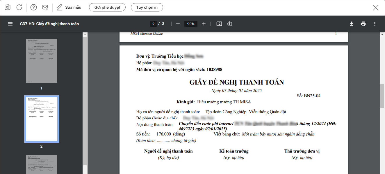 Bài viết này giúp bạn có thể nhập Kính gửi và họ tên người thanh toán để không phải ghi bằng tay khi in theo lô mẫu C37-HD: Giấy đề nghị thanh toán.