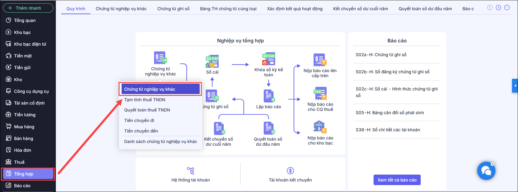 Bước 1: Vào Tổng hợp\Chứng từ nghiệp vụ khác