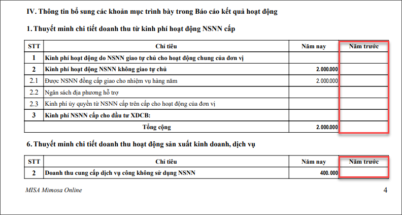 Bước 3: Điền số liệu năm trước vào các mục còn thiếu. Nhấn Cất