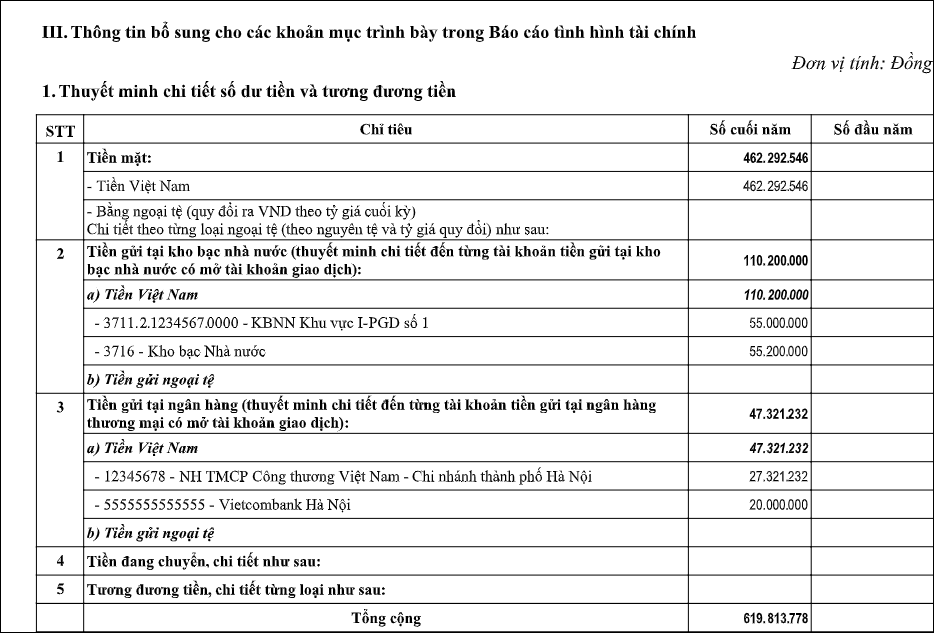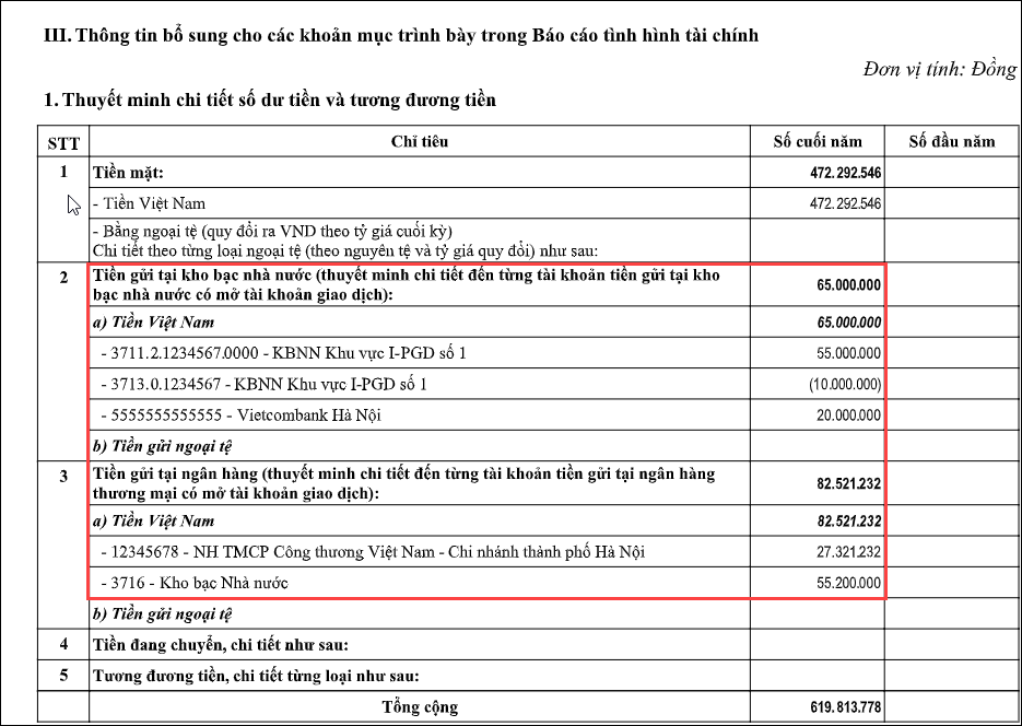 Bài viết này hướng dẫn anh/chị xử lý khi in báo cáo B04/BCTC (Thuyết minh báo cáo tài chính) bị hiển thị sai số liệu ở phần Tiền gửi kho bạc và Tiền gửi ngân hàng